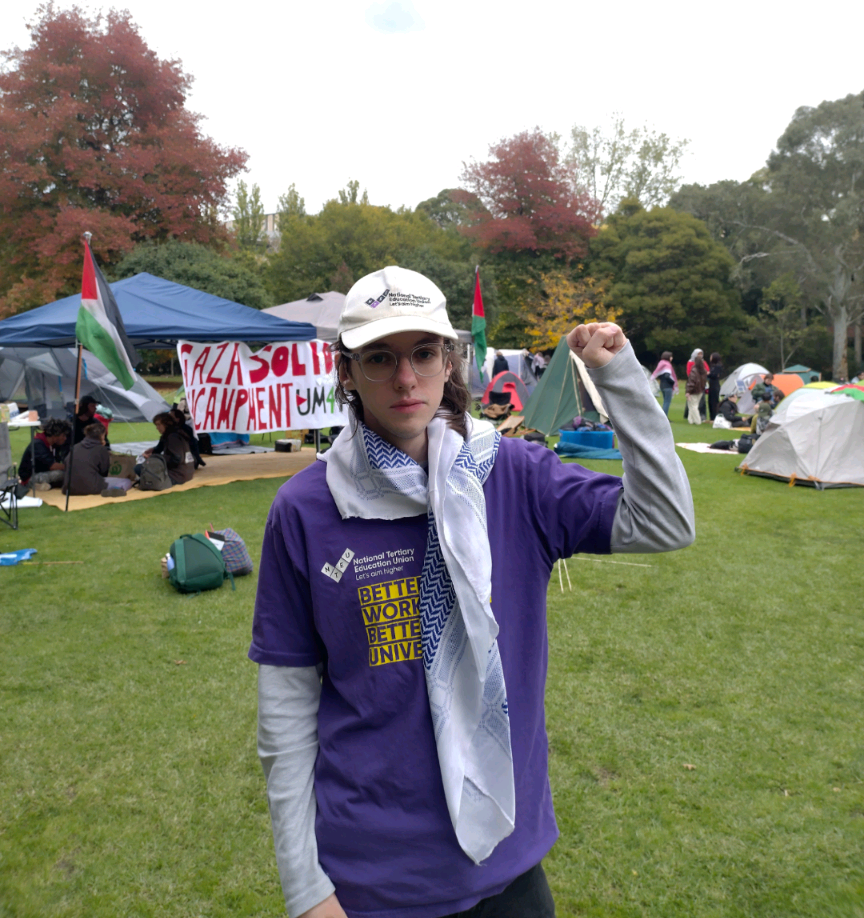 I’m a casual tutor in the School of Mathematics and Statistics. I’ve been organising in Maths & Stats for just over a year now. Last year, we managed to get over 50 tutors to strike during the second weeklong strike. This knocked out classes for over 1,500 students that week. More recently, I’ve been involved in running a campaign to stop 9 fixed-term teaching associates from losing their jobs. This has involved lots of flyering, posters, open letters and marches on the bosses. I’ve also been involved in the UniMelb Palestine working group and have helped to build the rallies to support the student Palestine campaigns, and have also been working on making BDS core union business.